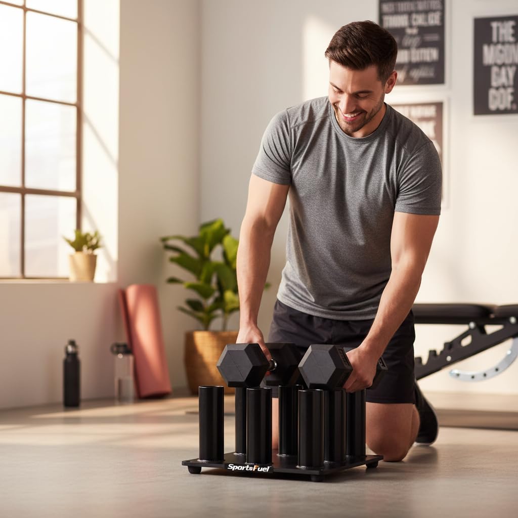 - 8-Dumbbell Capacity: Designed to store up to 8 dumbbells, keeping your workout area organized and clutter-free.
