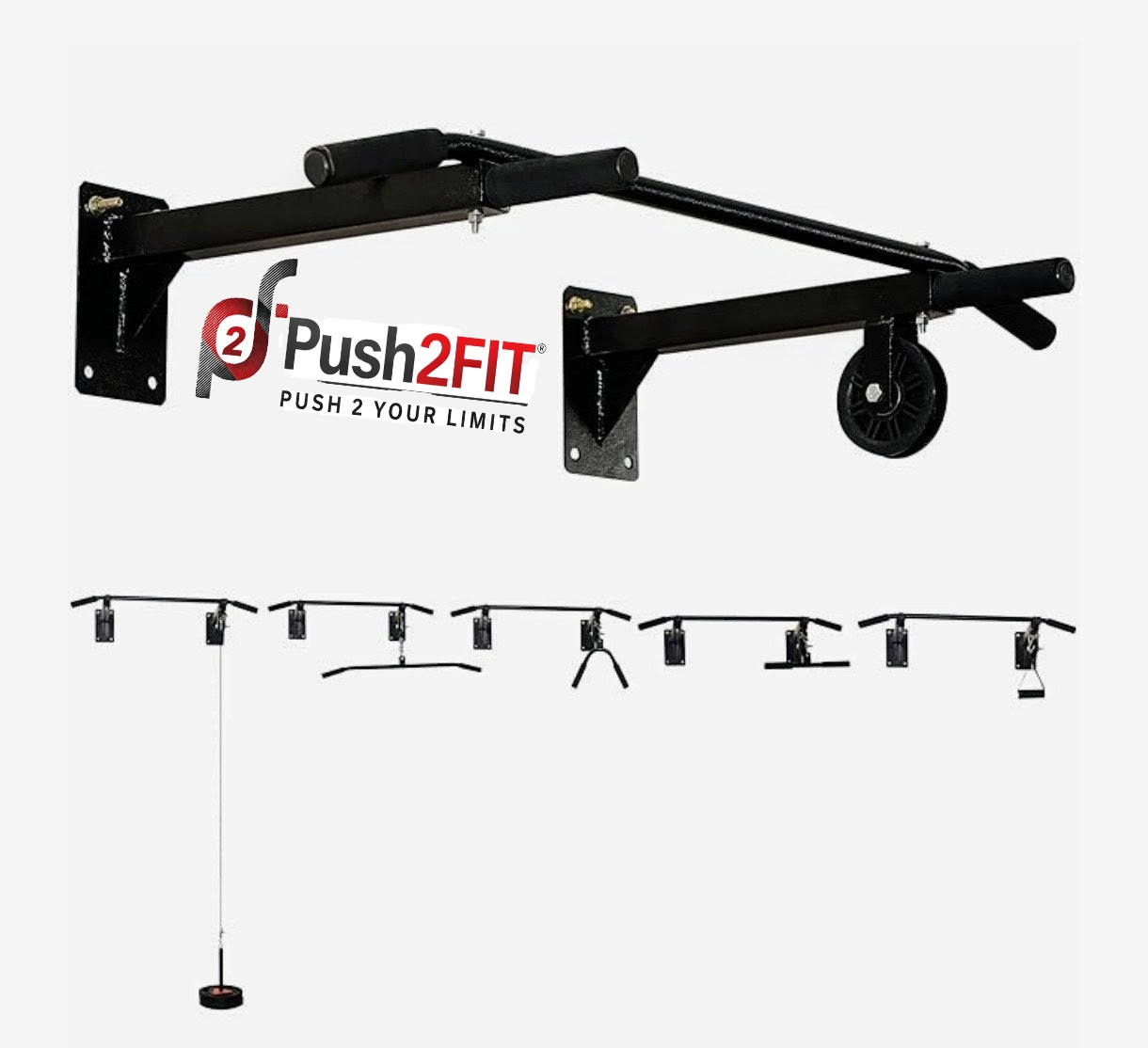 🏋️ Push2Fit Dynamic Wall Mount Chin-Up Bar with Lat Pulley – Complete Home Gym Setup