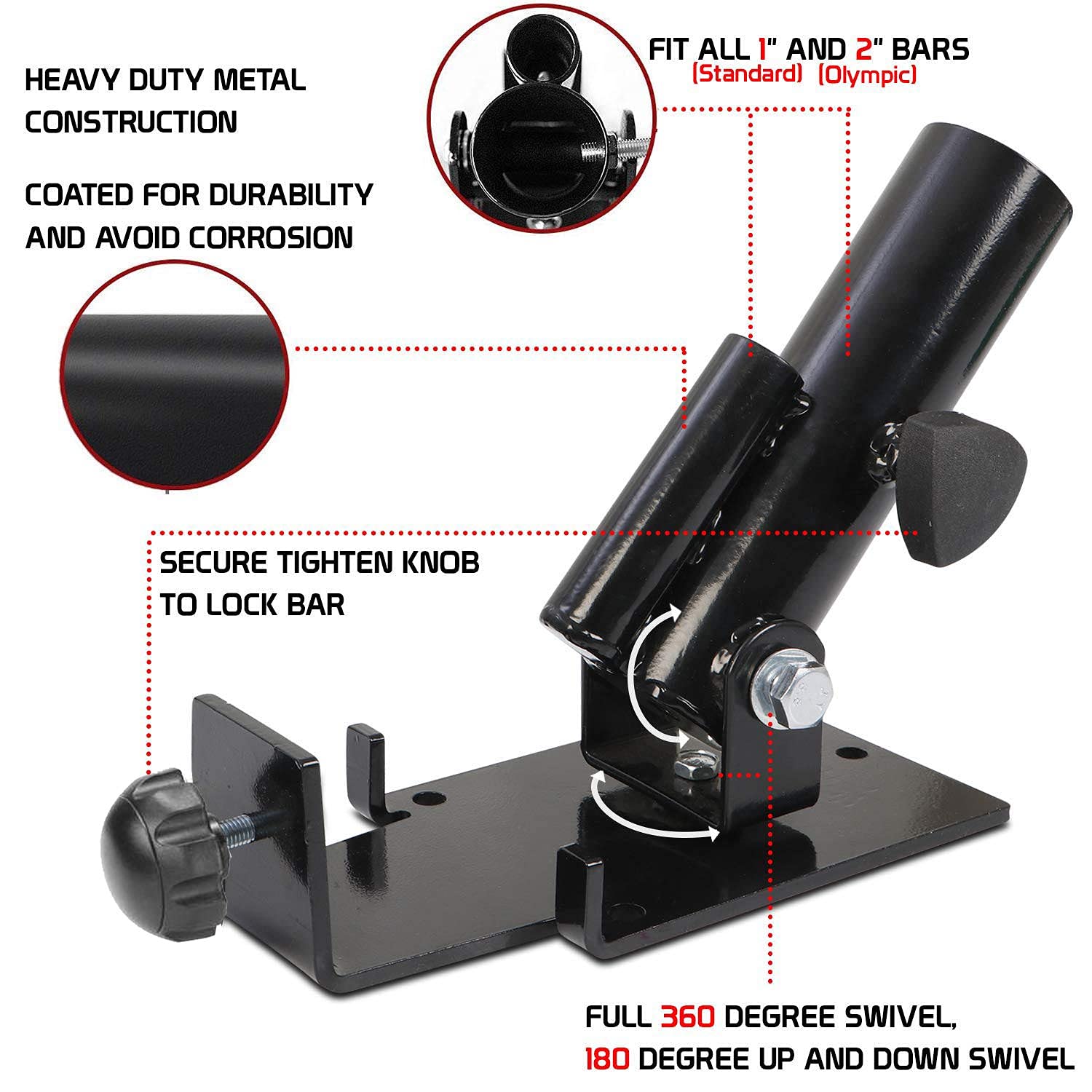 Includes tightening knob to secure Olympic bar