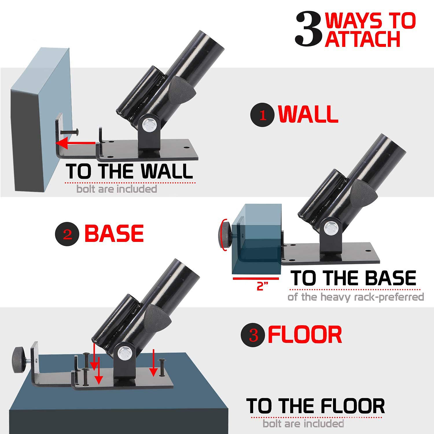 Can be installed under door, pipe, or fixed to ground/frame